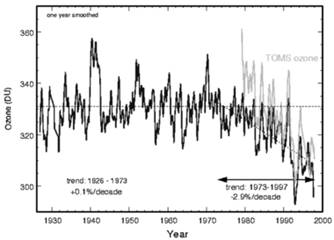 Динамика изменения озонового слоя над Аросой, Швейцария