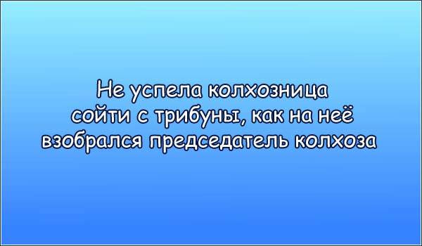 • Доярка сошла с трибуны и на нее тотчас же влез председатель.