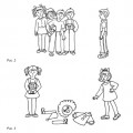 - «Стенка». Детский стишок «Стенка, стенка, потолок, две ступеньки, дзинь – звонок!» становится упражнением. (Стенка – щечки, потолок – лоб, ступеньки – губы, носик – звонок).
