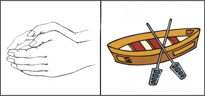 Лисенок в лодочке плывет (ладошки сложены в виде лодки),